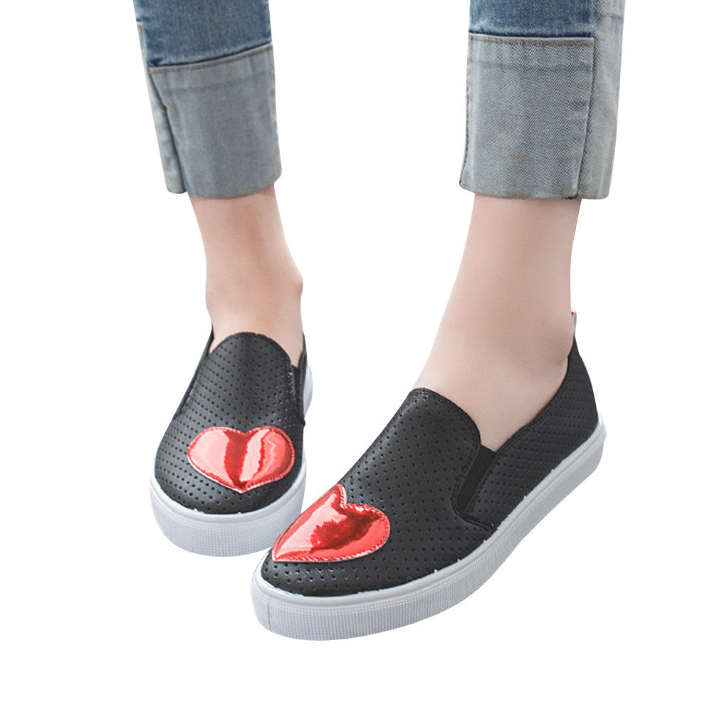 Fashion Women Shoes Small White Shoes Heart-Shaped Breathable Casual Flats Shoes